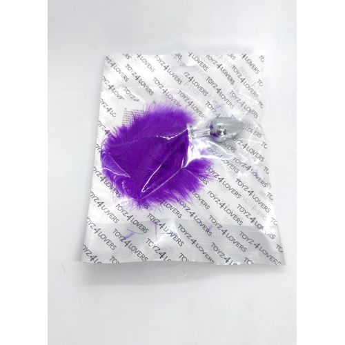 Анальная пробка металлическая серебристого цвета с фиолетовым хvостиком Boss series