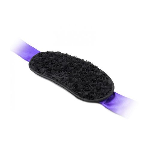 Роскошная маска выполненная черного сатина, с контрастной фиолетовой лентой, чтобы зафиксировать.