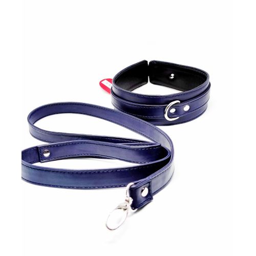 Ошейник с поводком БДСМ искусственная кожа темно синий DS Fetish