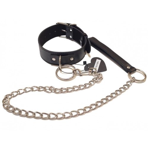 Ошейник с поводком цепочкой БДСМ искусственная кожа чорного цвета DS Fetish