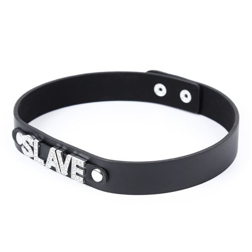 Ошейник с надписью SLAVE со страз, кожзам, черный