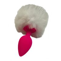 Анальная силиконовая пробка розовая с белым помпоном размер S