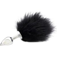 Металлическая анальная пробка с хвостиком размер S черная