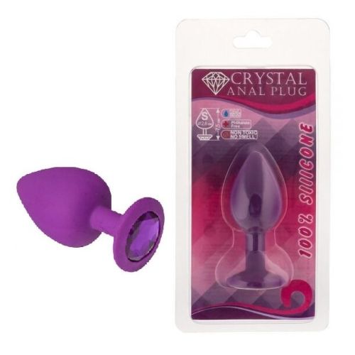 Силиконовая анальная пробка с фиолетовым камнем Purple Silicone Amethyst размер S