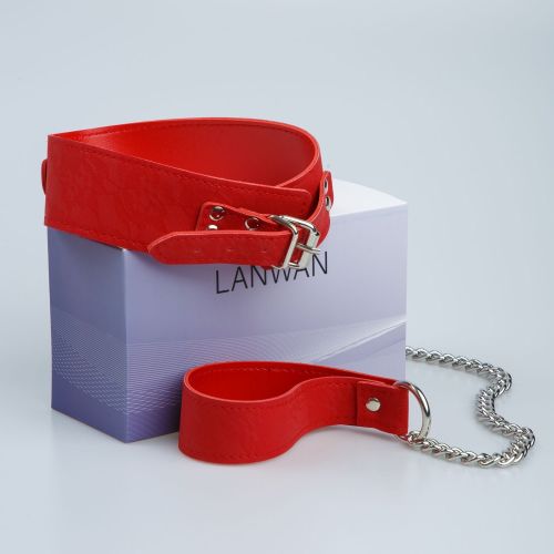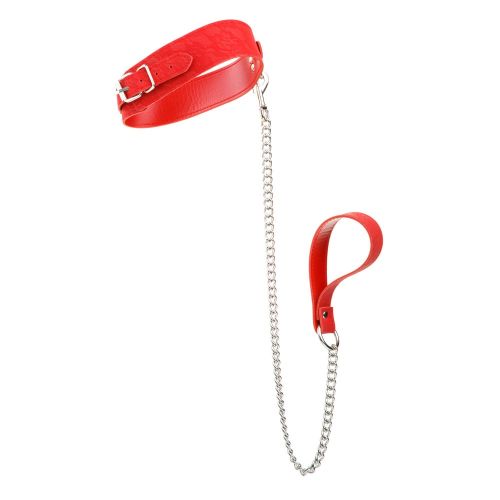 Ошейник с поводком БДСМ искусственная кожа красного цвета DS Fetish
