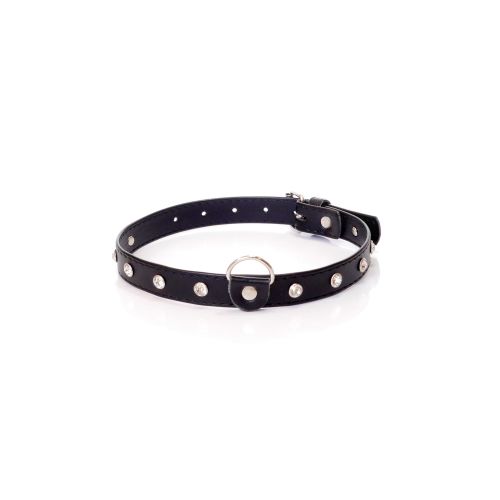 Ошейник с серебристыми камушками БДСМ из искусственной кожи черного цвета Boss Series