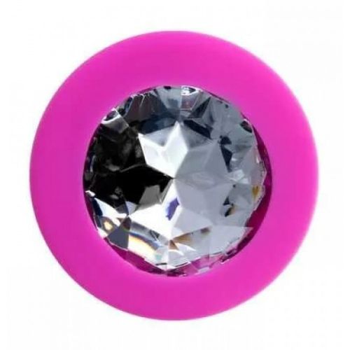 Анальная пробка силиконовая розовая с прозрачным кристаллом на стоппере Loveshop размер S