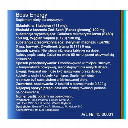 Boss Energy – самый новый и эффективный на данный момент препарат для мужчин, вызывающий возникновение и поддержание сильной эрекции. Это проверенный и действительно работающий препарат, доступный без рецепта, используемый при проблемах с эрекцией. Замена синим таблеткам и другим таблеткам для эрекции. Отличный состав вызывает скорую и длительную эрекцию. Всего одна таблетка BOSS и уже через час вы достигнете потрясающей эрекции, а затем и радости от восхитительного секса.