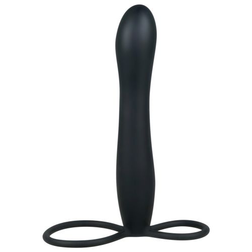 Насадка на член для двойного проникновения с петлей на член и мошонку черного цвета You2Toys длина 150 мм
