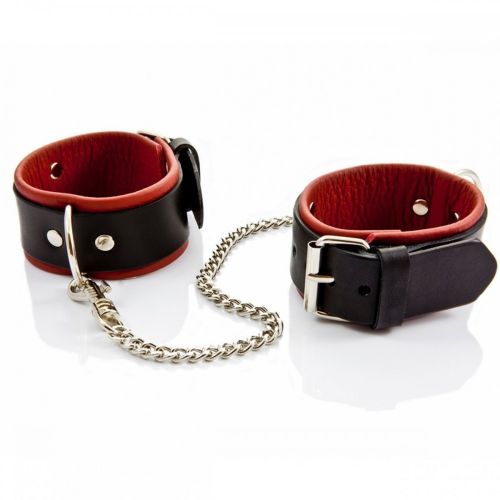 Оковы БДСМ для женщин ручной работы из натуральной кожи черно красного цвета Whips Collections