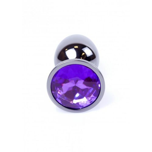 Анальная металлическая пробка серебристого цвета с фиолетовым камушком Boss series размер S