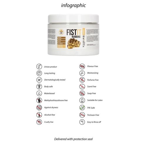 Fist-It Numbing - это обезболивающий анальный крем. Это гарантирует, что анус станет менее чувствительным, так что фистинг будет проходить легче. Обезболивающий крем на водной основе безопасен для использования с презервативами и перчатками. Не прилипает, остается густым и гладким в течение длительного времени и легко смывается теплой водой. Способ применения: Нанесите столько геля, сколько хотите, на нужную вам часть тела и повторяйте так часто, как вам нравится. Избегайте попадания в глаза. Прекратите использование при появлении покраснения, жжения или раздражения. Не наносите средство на поврежденную кожу. Желаемый результат может варьироваться от человека к человеку. Состав: вода, глицерин, пропиленгликоль, гидроксиэтилцеллюлоза, денатурированный спирт, бензоат натрия, ментол, сорбат калия, гидроксид натрия, лимонная кислота.