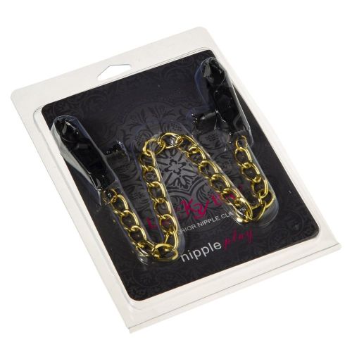 Прищепки на соски черные с золотистой цепочкой Nipple play Gold