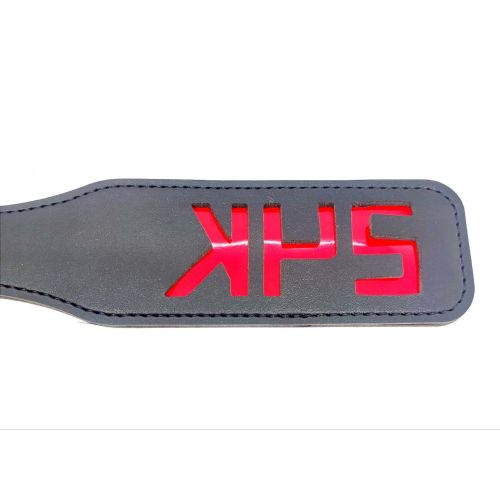 Шлепалка овальная БДСМ черного цвета с красной надписью DS Fetish длина 315 мм