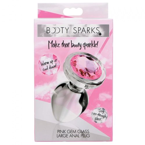 Анальная пробка стеклянная прозрачного цвета с розовым камушком Foxshow