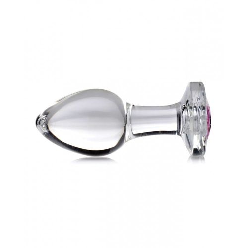 Анальная пробка стеклянная прозрачного цвета с розовым камушком Foxshow размер Medium
