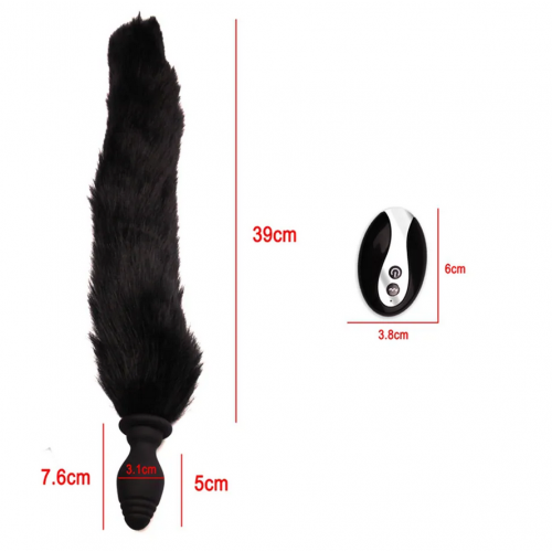 Анальная пробка с вибрацией с хвостом черного цвета и пультом управления Crystal