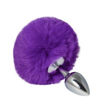 Анальная пробка металлическая серебристая с фиолетовым хвостиком Crystal размер S