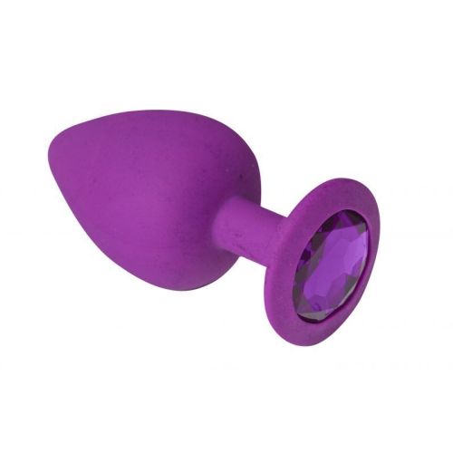 Анальная пробка силиконовая с фиолетовым кристаллом Crystal Silicone размер M