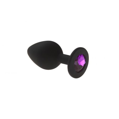 Анальная пробка силиконовая с фиолетовым кристаллом Crystal Silicone размер M