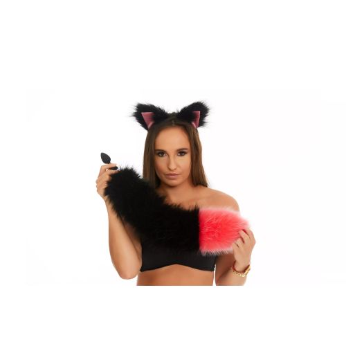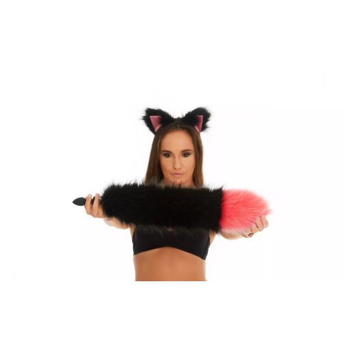Анальный меховой хвост без пробки Черный с ярко розовым кончиком OKOVA 500 мм