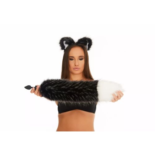 Анальный меховой хвост без пробки Чернобурый с белым кончиком OKOVA 500 мм