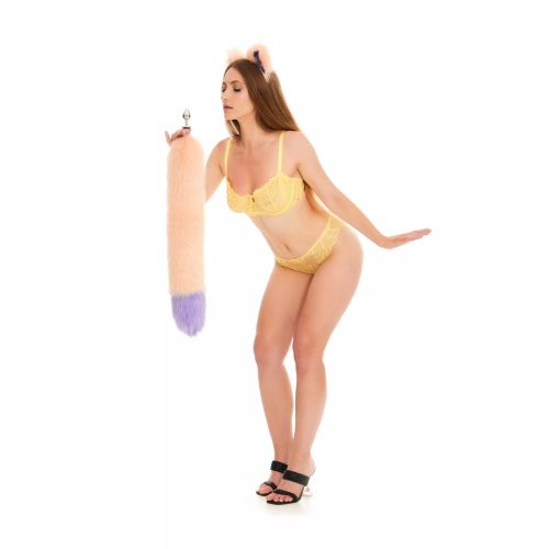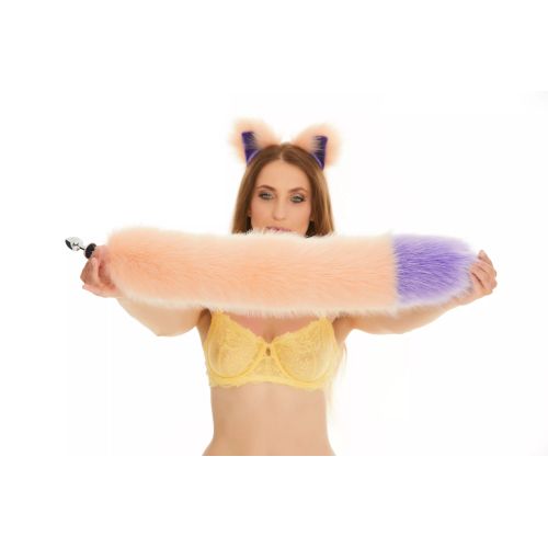 Анальный меховой пушистый хвост без пробки Персиковый с фиолетовым кончиком OKOVA 600 мм