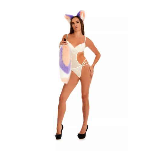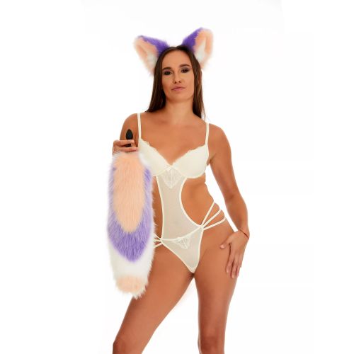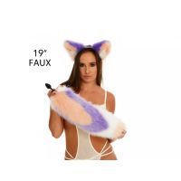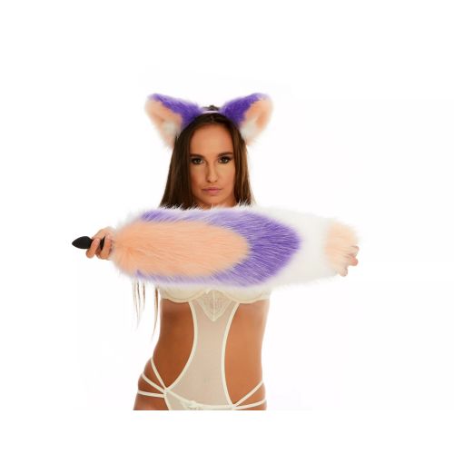 Анальный меховой хвост без пробки Трехцветный Персиковый фиолетовый белый с персиковым кончиком OKOVA 500 мм