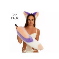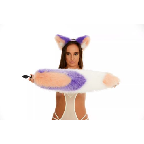 Анальный меховой хвост без пробки Трехцветный Персиковый фиолетовый белый с персиковым кончиком OKOVA 600 мм