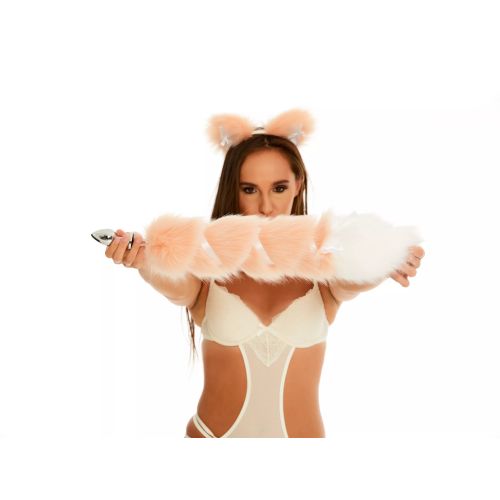 Анальный хвост с лентой без пробки Персиковый с белым кончиком OKOVA 500 мм