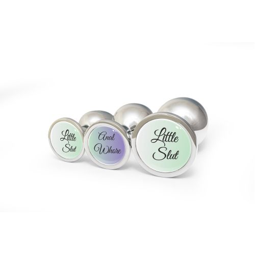 Анальная пробка металлическая серебристая с надписью Anal Whore OKOVA размер L