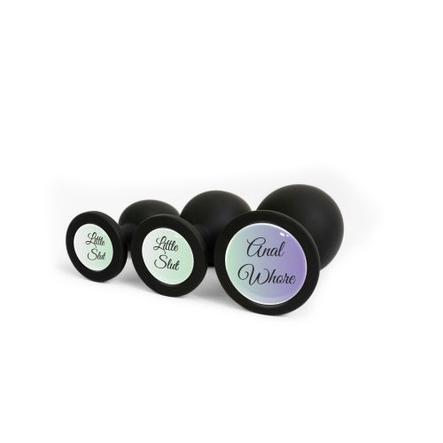 Анальная пробка силиконовая черная с надписью Anal Whore OKOVA размер L