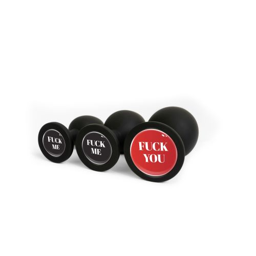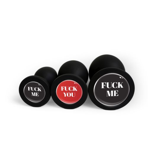 Анальная пробка металлическая серебристая с надписью Fuck Me OKOVA размер M