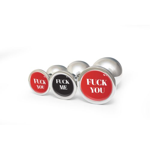 Анальная пробка металлическая серебристая с надписью Fuck you OKOVA размер M