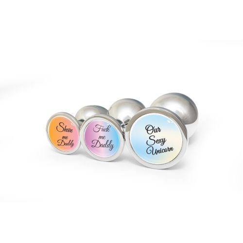Анальная пробка металлическая серебристая с надписью Fuck me Daddy OKOVA размер S