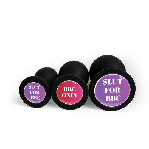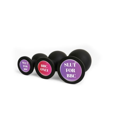 Анальная пробка силиконовая черная с надписью Slut for BBC OKOVA размер M