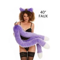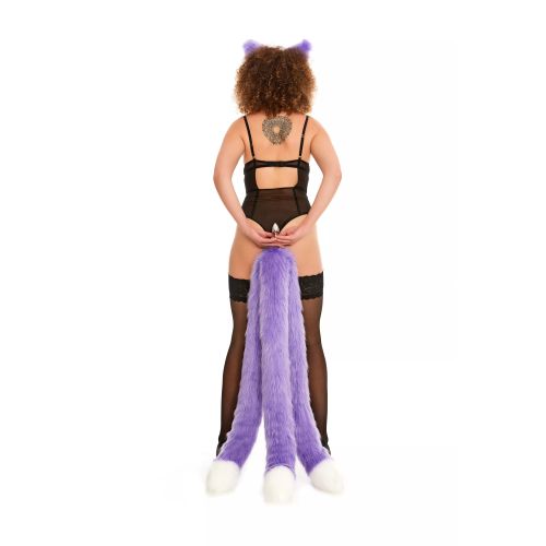 Анальный тройной меховой хвост без пробки Фиолетовый с белым кончиком OKOVA 1000 мм
