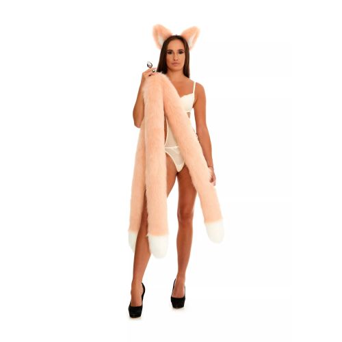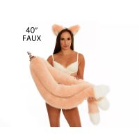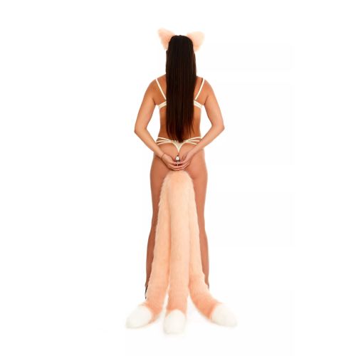 Анальный тройной меховой хвост без пробки Персиковый с белым кончиком OKOVA 1000 мм