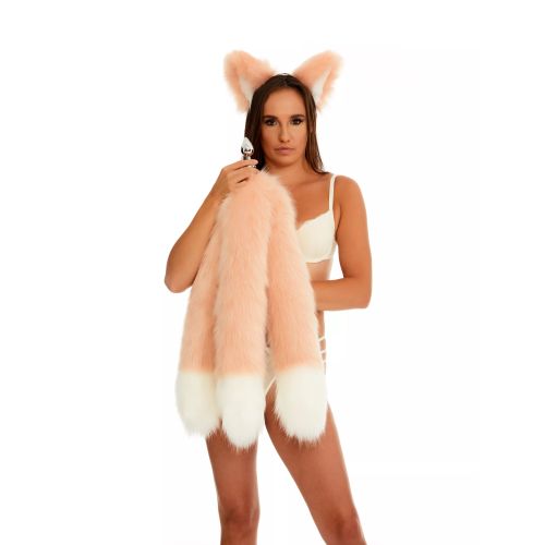 Анальный тройной меховой хвост без пробки Персиковый с белым кончиком OKOVA 600 мм