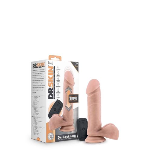 Вибратор реалистичный с мошонкой на присоске Blush Dr. Skin Dr Beckham, с пультом, бежевый