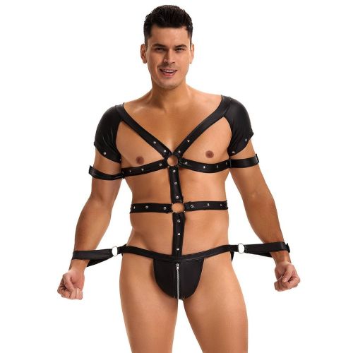 Боди-портупея мужская Star Night с ограничителями и молнией, черная, M