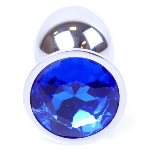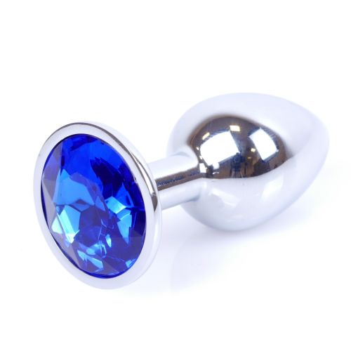 Анальная пробка S серебристого цвета с кристаллом синего цвета BOSS of TOYS Jewellery plug
