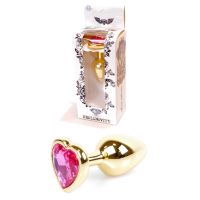 Анальная пробка S золотистого цвета с кристаллом в виде сердца малинового BOSS of TOYS Jewellery plug