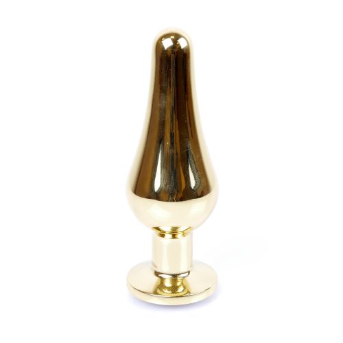 Анальная пробка из нержавеющей стали золотистого цвета с розовым камушком Boss series Plug Jewellery