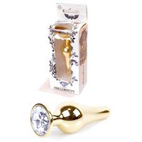 Анальная пробка золотистого цвета с кристаллом серебристого цвета BOSS of TOYS Jewellery BUTT plug