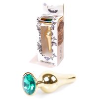 Анальная пробка золотистого цвета с кристаллом зеленого цвета BOSS of TOYS Jewellery BUTT plug
