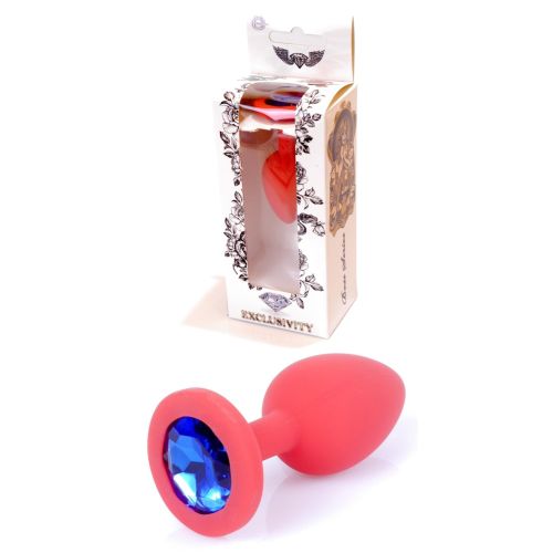 Анальная пробка S красного цвета с кристаллом синего цвета BOSS of TOYS Jewellery plug