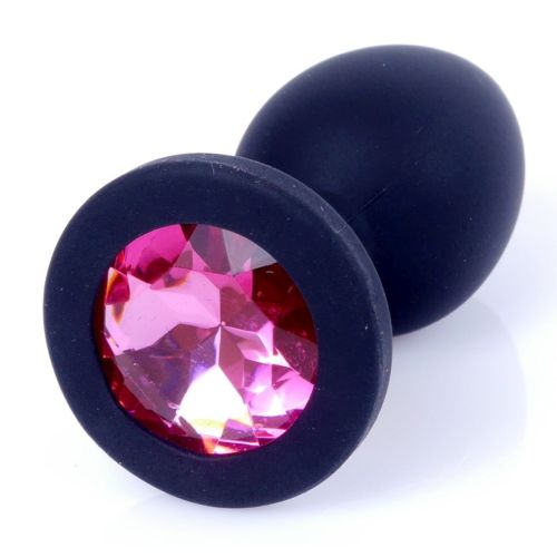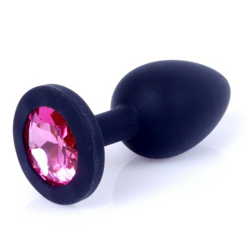 Анальная пробка S черного цвета с кристаллом розового цвета BOSS of TOYS Jewellery plug