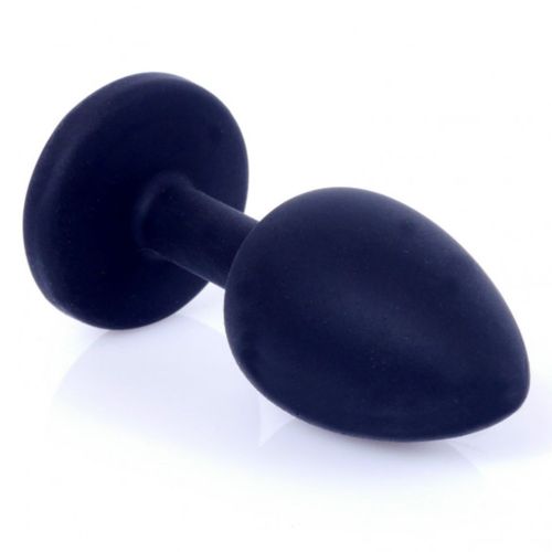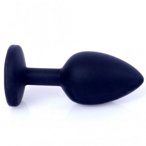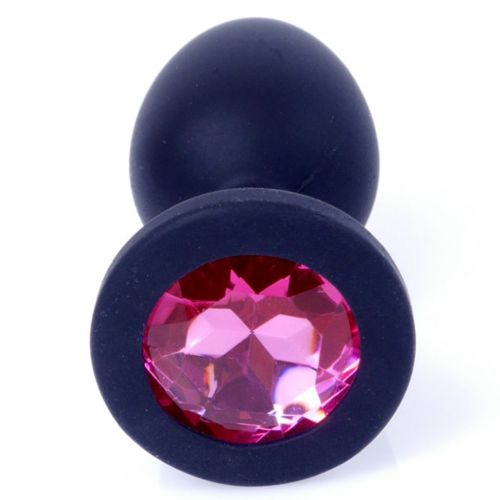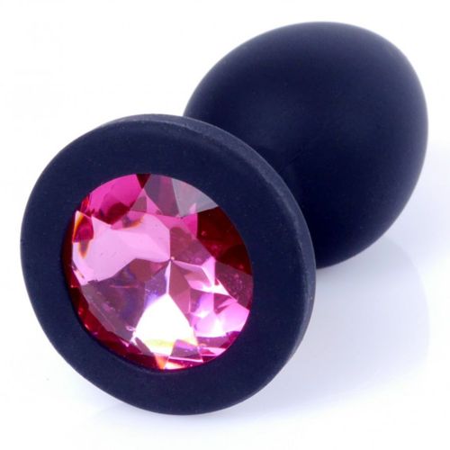 Анальная пробка силиконовая черного цвета с розовым камушком Boss series Jewellery