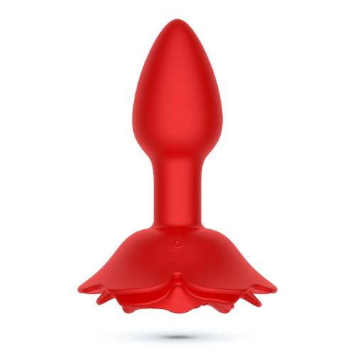 Анальная вибропробка роза с ротацией силиконовая красная с дистанционным пультом управления Crushious Giulietta